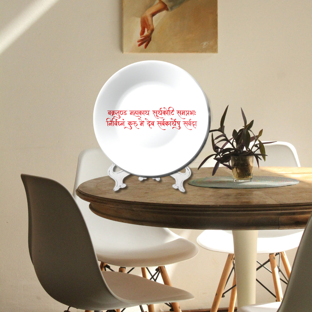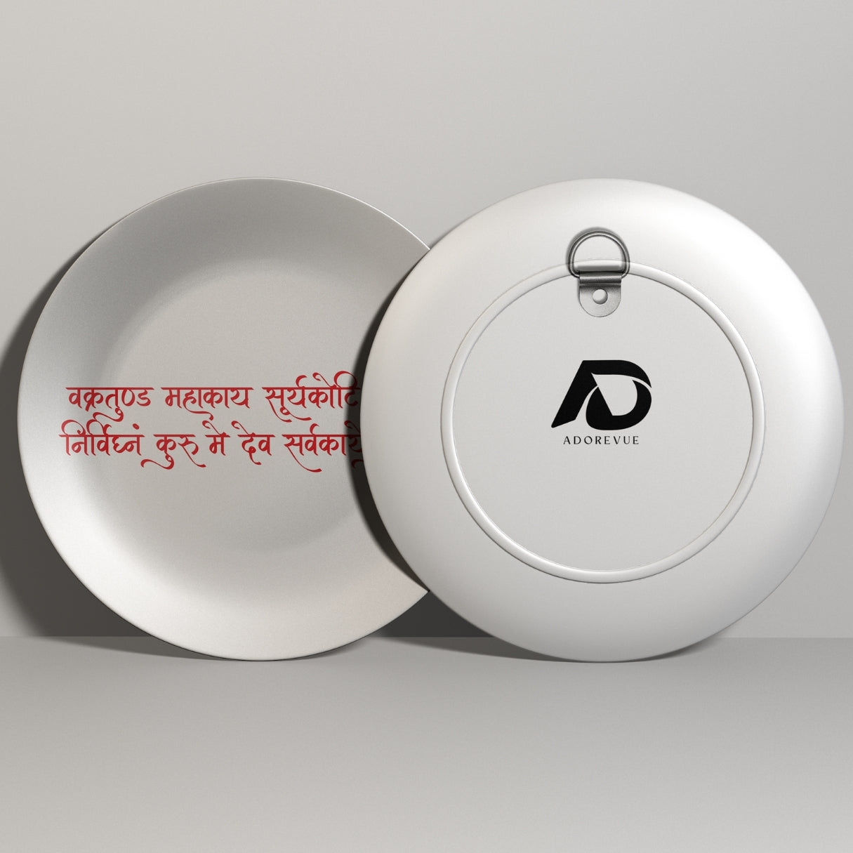 Invite blessings and prosperity into your space with the Ganesha Mantra Decorative Wall Plate. Featuring the revered Ganesha Mantra, this plate embodies the energy of wisdom, remover of obstacles, and success. Handcrafted with precision from high-quality ceramic, it showcases intricate designs and a glossy finish, making it a beautiful addition to your home, meditation area, or spiritual space.